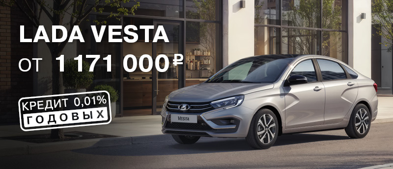 * ПСК: 3,010%–33,692% годовых. Ставка по кредиту 0,01% действует при приобретении нового автомобиля LADA Vesta (ТС) с автоматической коробкой переключения передач по программе VESTA ВЫГОДНЫЙ. Валюта кредита — рубли РФ; первоначальный взнос — от 50%; срок кредита — 12 мес.; сумма кредита — от 200 000 руб. Предложение действует при условии единовременного оформления на ТС договора имущественного страхования КАСКО в любых страховых компаниях, выбранных заемщиком и соответствующих требованиям Банка. При расторжении договора имущественного страхования КАСКО процентная ставка увеличивается на 3% годовых. Возврат кредита — ежемесячные (аннуитетные) платежи. Обеспечение — залог приобретаемого ТС. Действительно до 30.04.2026. Предложение ограничено. Не оферта.