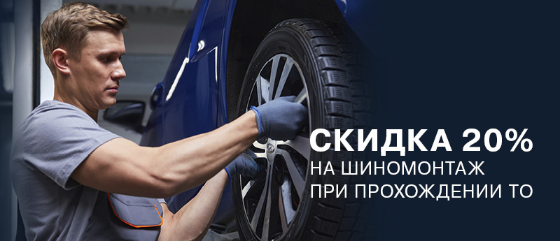 Весь октябрь профессиональный шиномонтаж со скидкой 20% при прохождении любого планового технического обслуживания.